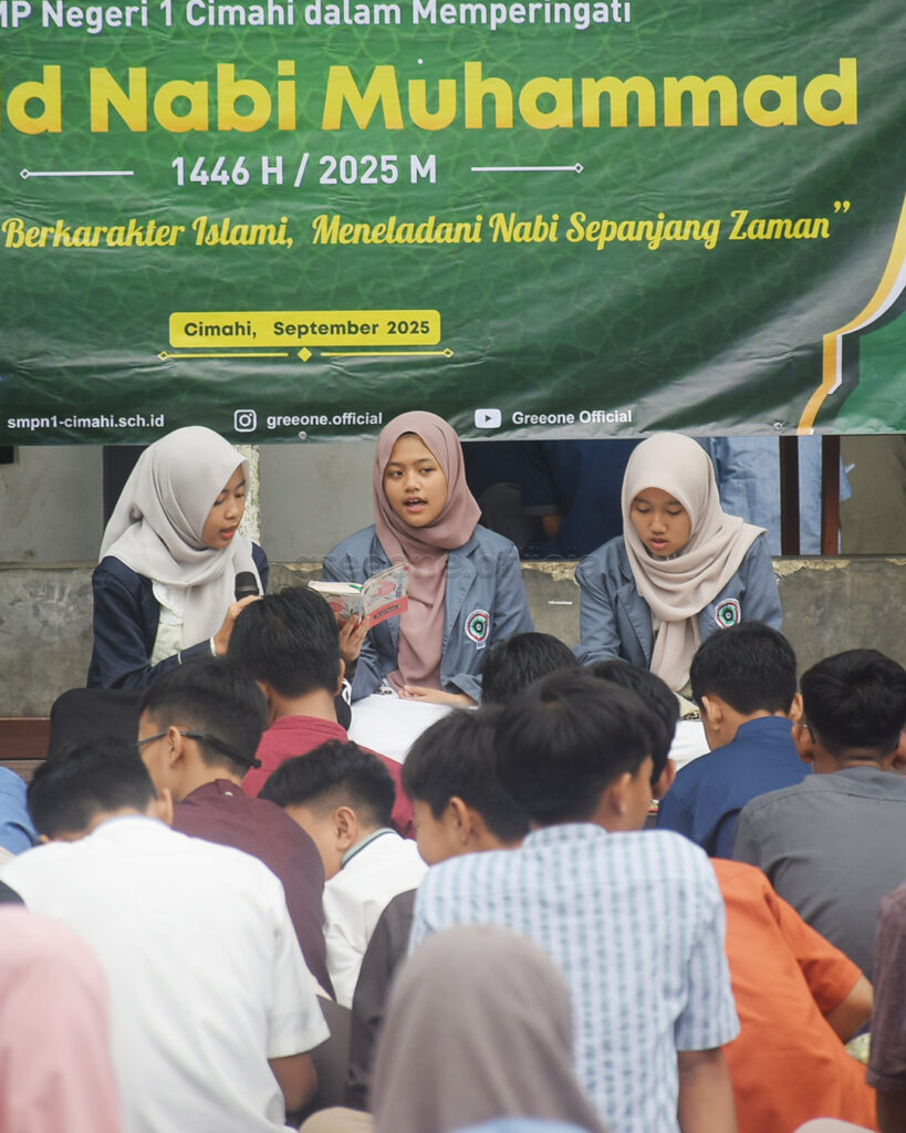 Dalam rangka memperingati Maulid Nabi Muhammad SAW 1447 H, SMP Negeri 1 Cimahi menyelenggarakan kegiatan yang penuh makna pada Kamis, 18 September 2025. Acara ini diikuti oleh seluruh siswa, guru, serta staf sekolah dengan penuh antusias.